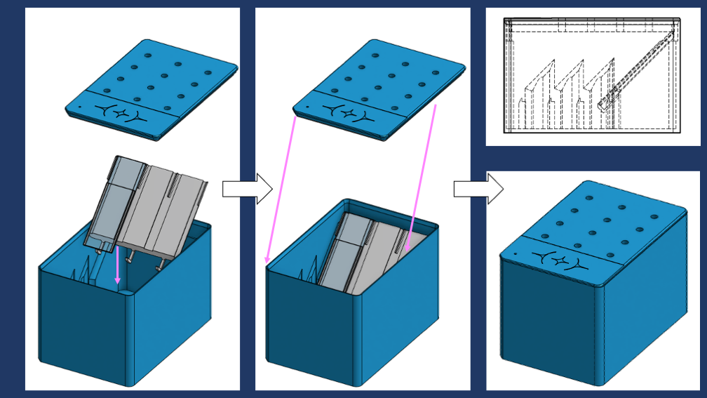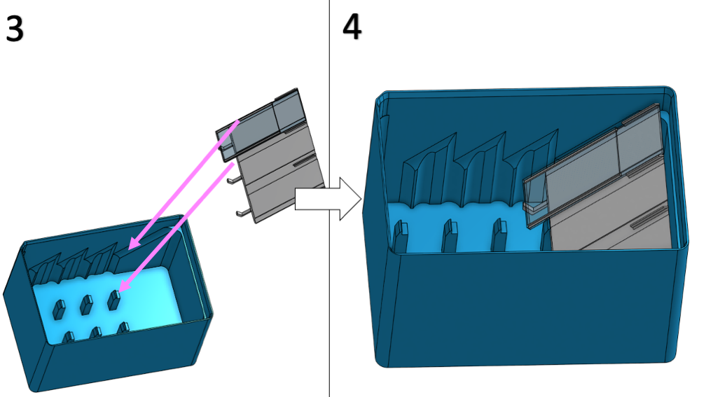 <figure><img src="https://3271682270-files.gitbook.io/~/files/v0/b/gitbook-x-prod.appspot.com/o/spaces%2FWKyUXOqIKtqE7cAUE2yQ%2Fuploads%2Fh20X1HngoztHcx5ef8mm%2FAlign%20diagonal%20edge.png?alt=media&#x26;token=d70026dc-e34f-4aec-8741-2c3d368610f1" alt=""><figcaption><p>Align the slanted and rounded corners of the lid and base.</p></figcaption></figure>
