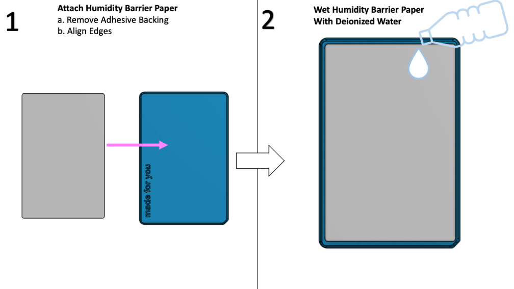 ## Step 4 - Adhere moisture barrier paper to the lid's bottom, wet it with 10 mL of deionized water