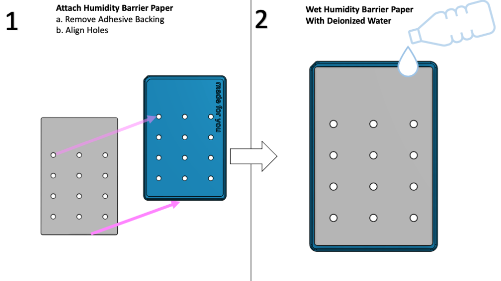<figure><img src="https://3271682270-files.gitbook.io/~/files/v0/b/gitbook-x-prod.appspot.com/o/spaces%2FWKyUXOqIKtqE7cAUE2yQ%2Fuploads%2FUzppTnnjw4kamOw9ZwHa%2FHumidity%20Barrier%20paper%20alignment%20and%20wetting.png?alt=media&#x26;token=27a94e54-5eba-48f4-97a8-de76f9bd0af0" alt=""><figcaption><p>Make sure the holes are aligned if using <strong>automation lid</strong></p></figcaption></figure>